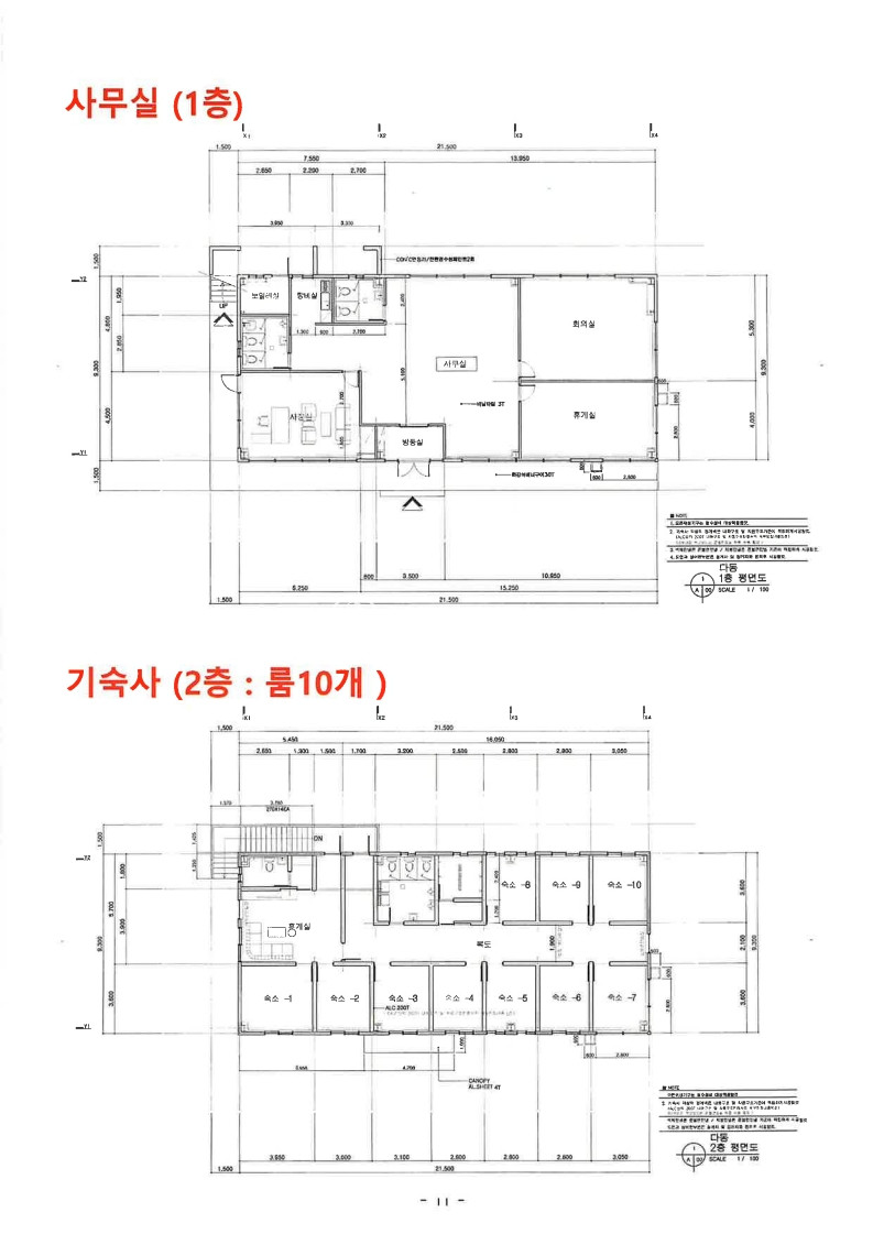 • 총연면적 : 847평(기숙사 사무실등 포함)